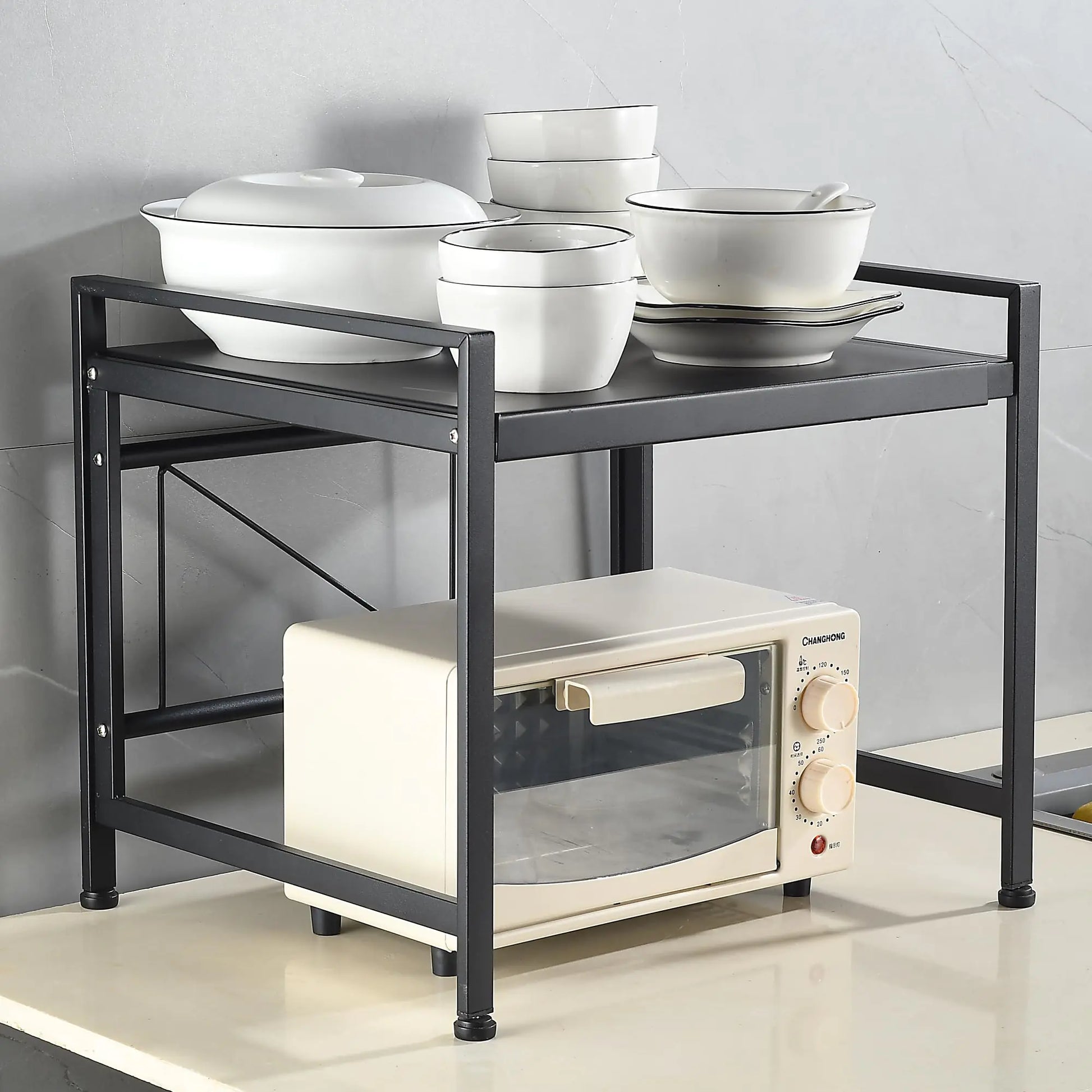 ECHLI Expandable Microwave Shelf 2 Tier Microwave Stand Microwave Shelf StandMicrowave Oven RackBakers RackKitchen Countertop Organizer Shelves90 lbs Weight Capacity (Square 34cm Wide Black)
